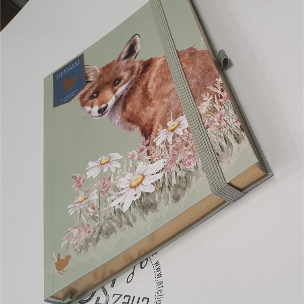 Carnet souple de luxe Renard 15x21cm ligné Elastique et Ruban marque-page Dorures Wrendale