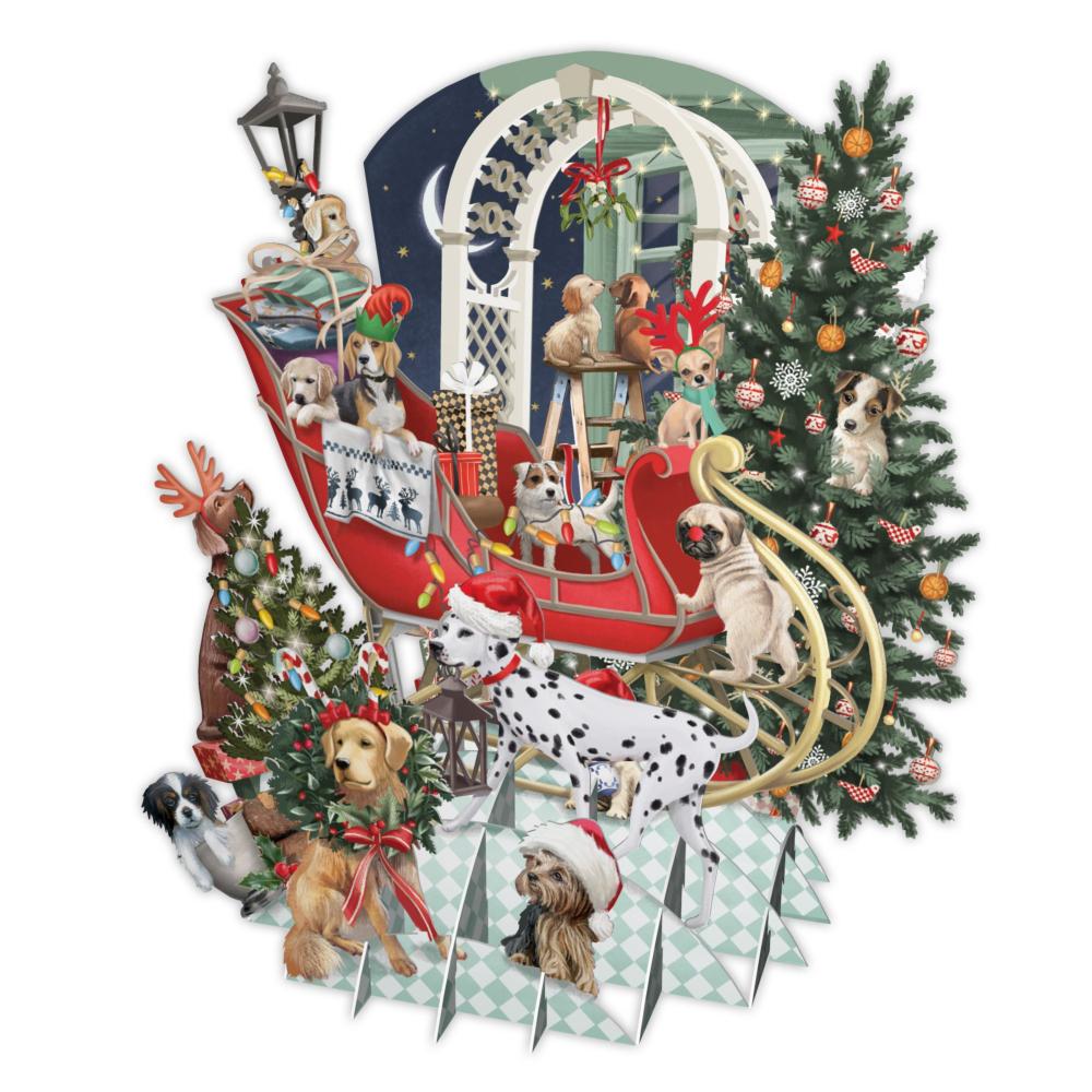 Carte Noël 3D Traîneau et Chiens 16x16 Décor en relief avec enveloppe