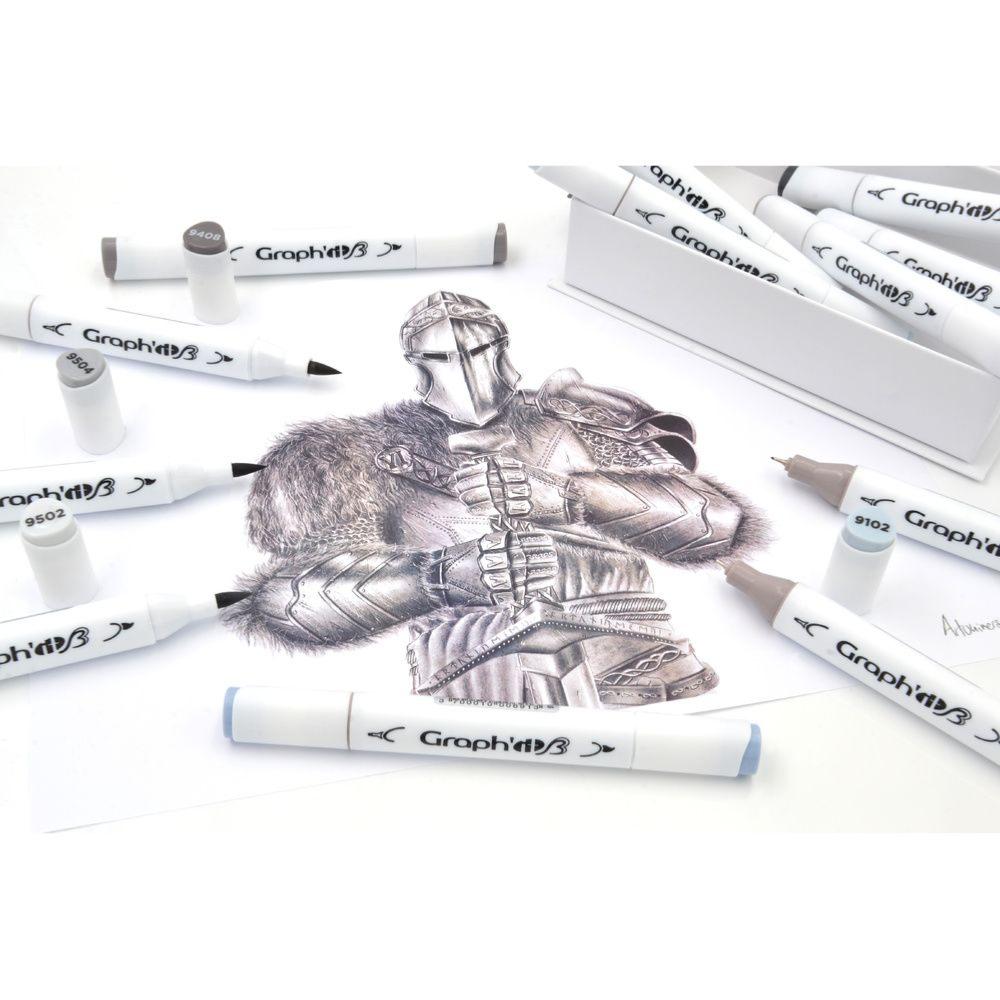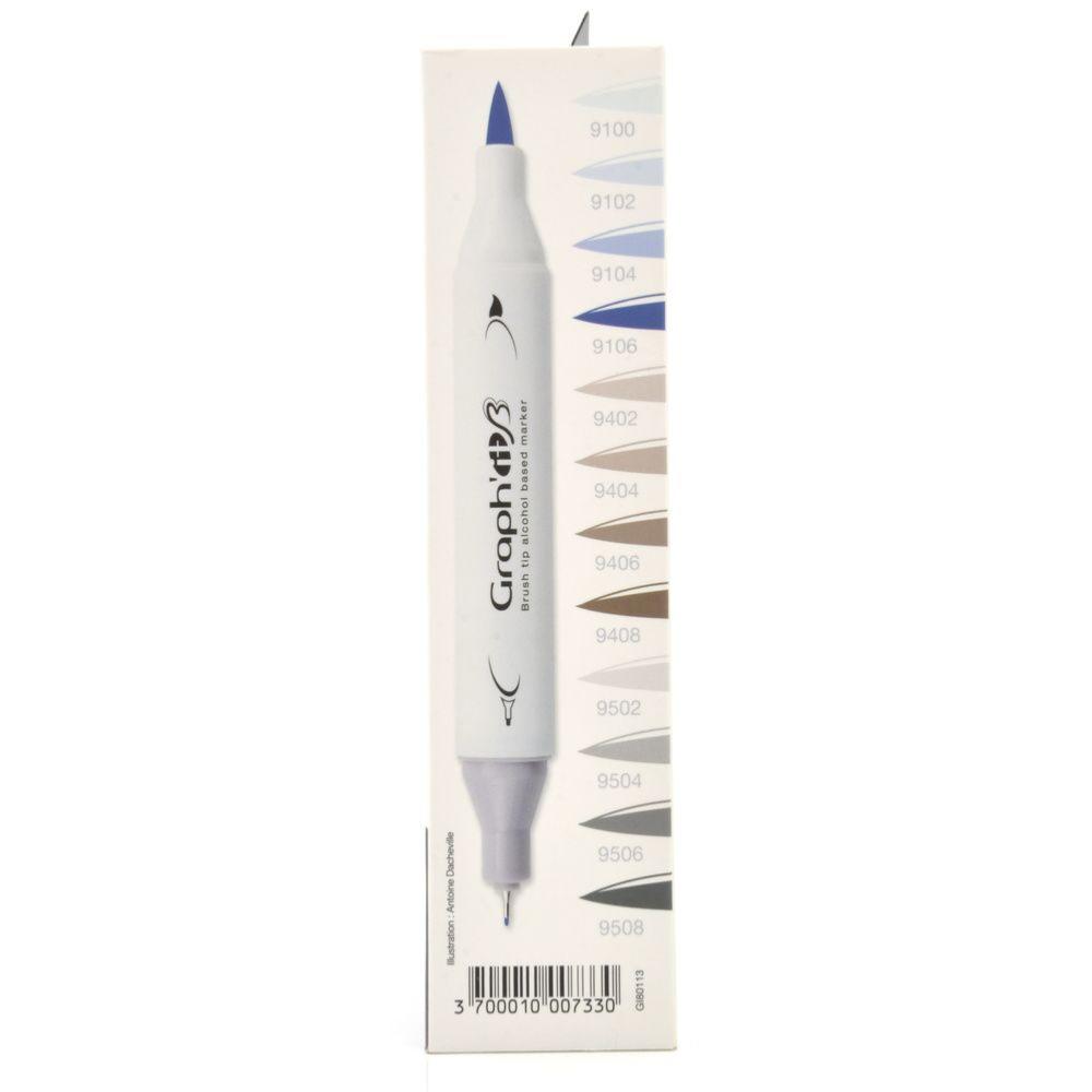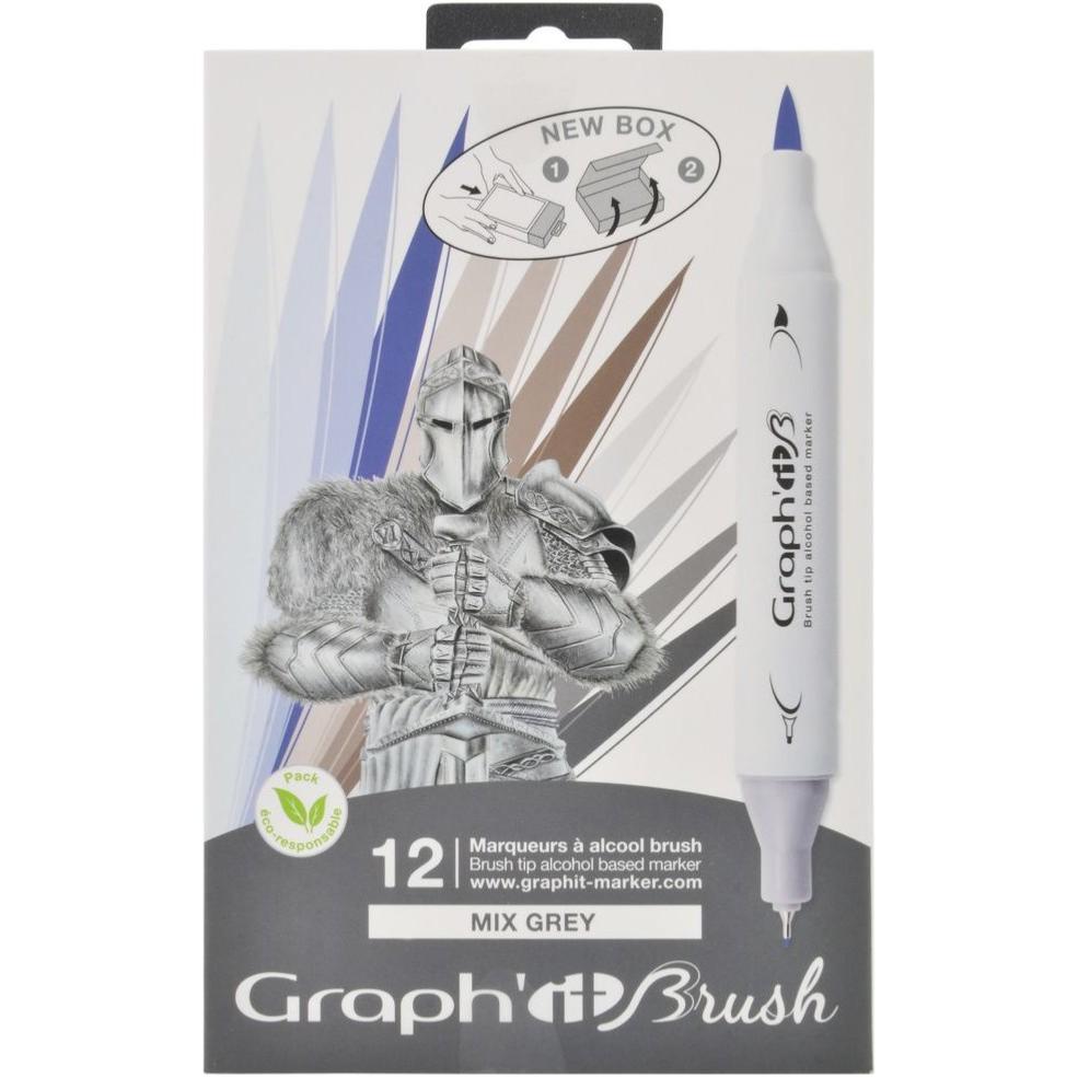 • Nom du Set : Graph'it Brush - 12 Marqueurs à Alcool - Mix Grey