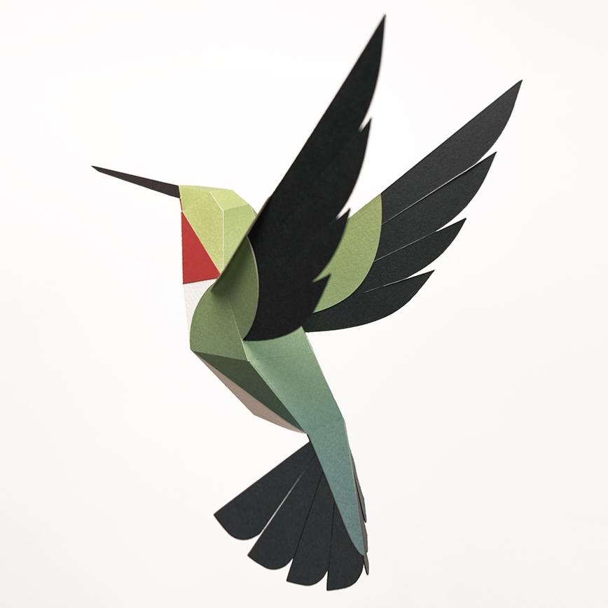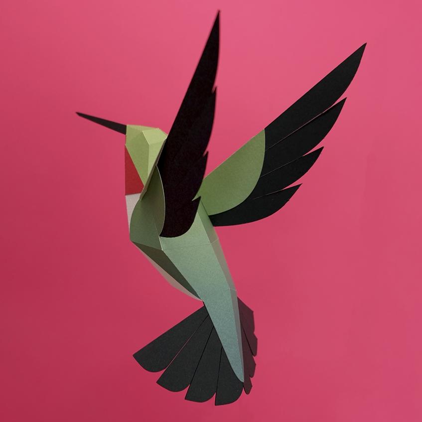 Kit de pliage Prédécoupé Colibri à queue large 23 cm Oiseau en Papier 3D Plego