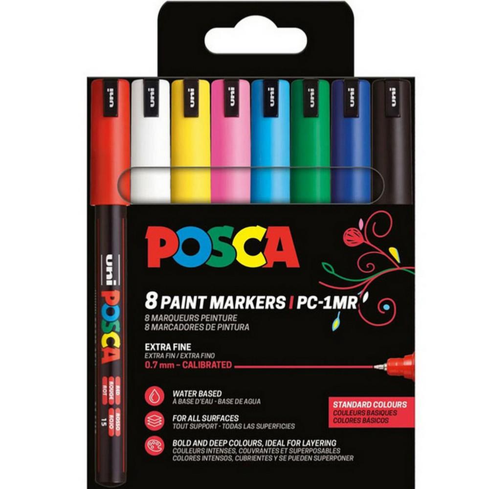 Set 8 Marqueurs Peinture Posca PC1M Couleurs basiques Pointe calibrée extra fine 0,7 mm