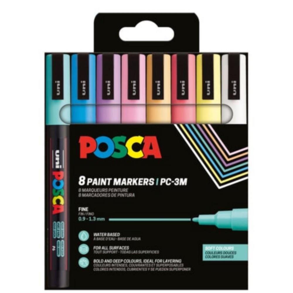 Set 8 Marqueurs Peinture Posca PC3M Couleurs Douces Pointe conique fine 0.9 à 1.3 mm