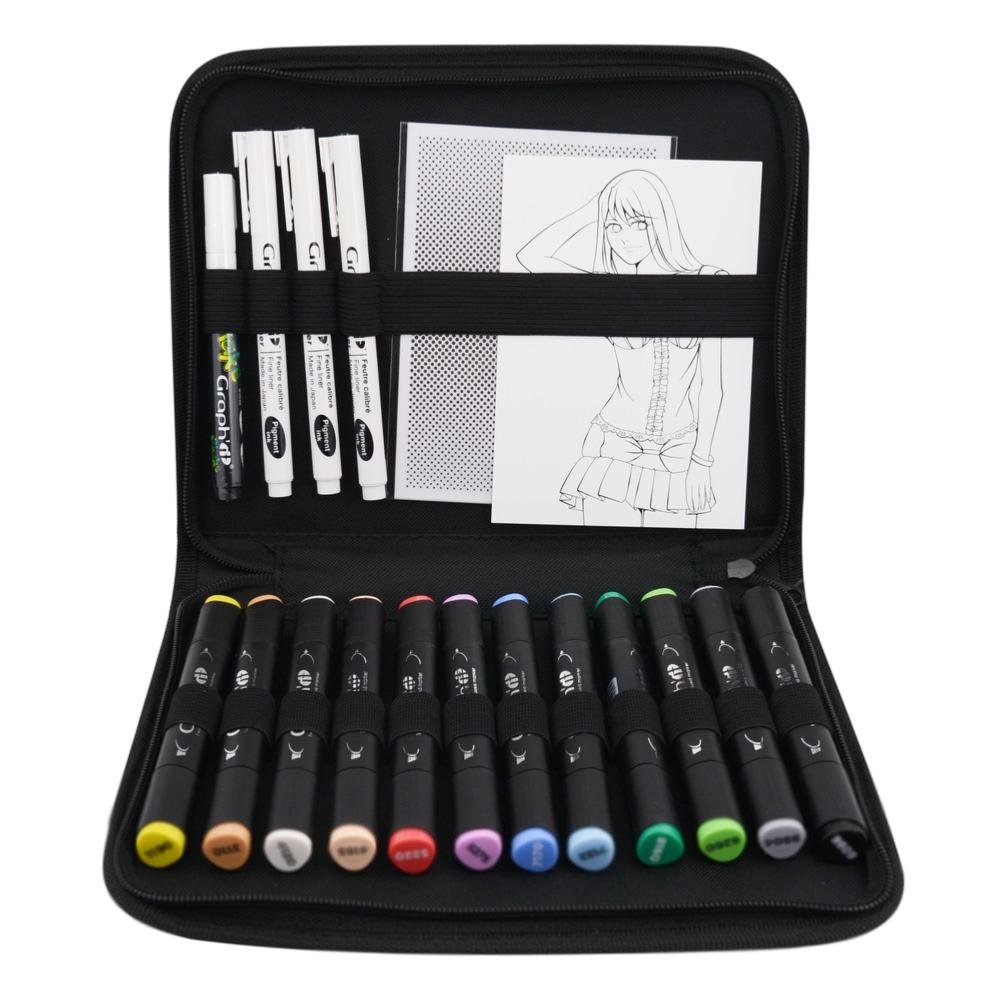 Trousse Feutres Graph'It Manga Starter Marqueurs à Alcool Double-Pointe Liners Trames Carnet